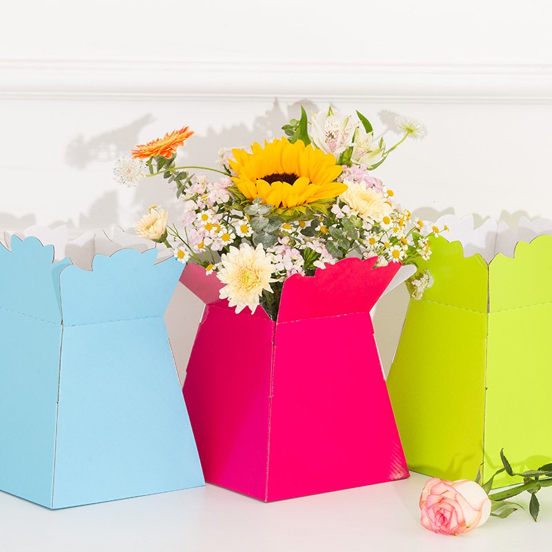 Top quality cardboard Living Vase / Bouquet Box,with white cardboard inner, which is visible on top folds ” no ugly brown ” basic cardboard to hide when using as presentation boxes.